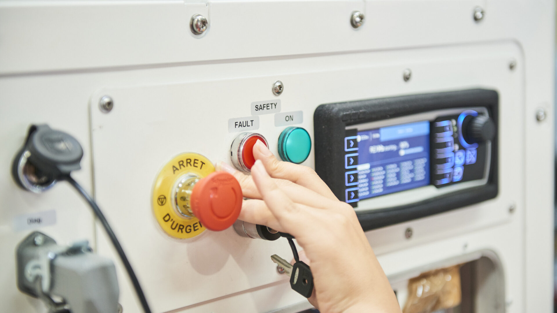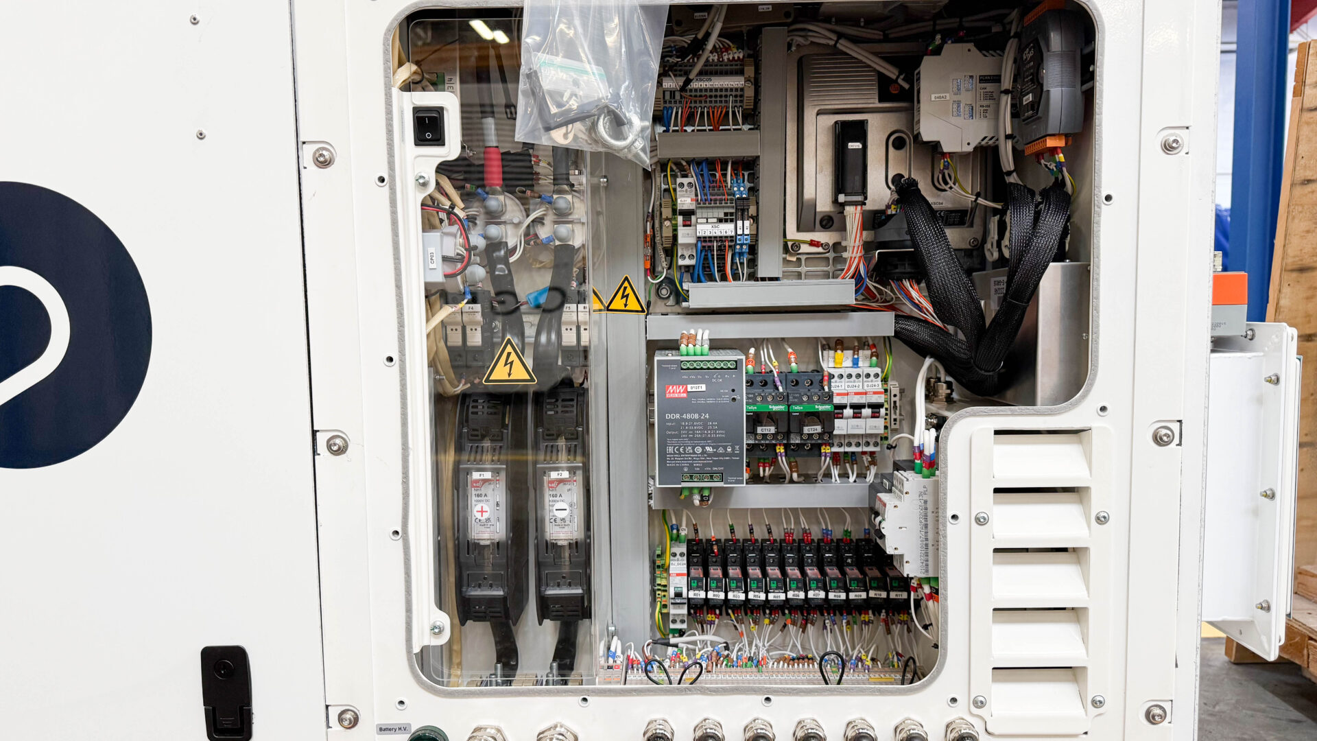 Electrical cabinet containing our control system and our safety card for communication with the ship’s various electrical interfaces.