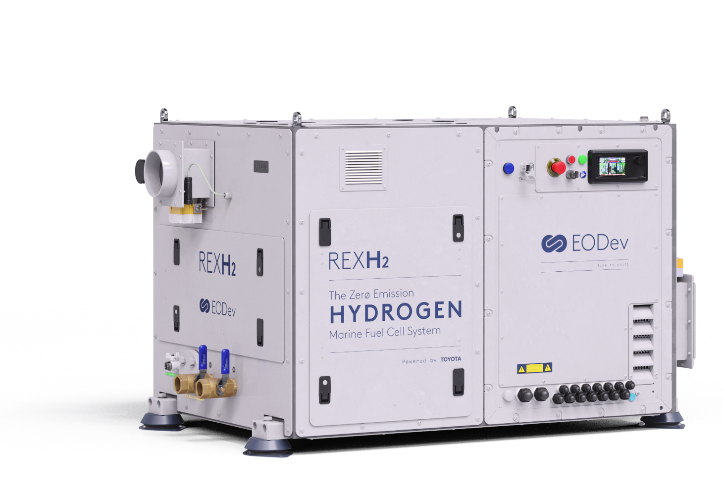 The REXH₂ is a modular ”Plug & Play” system for marine and river navigation that uses a Toyota fuel cell to help propel and/or power on-board systems without emissions or noise. Hybrid, it adapts to all types of system, whether electric or diesel, if necessary.